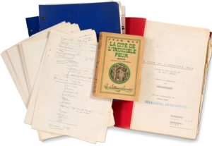 * tapuscrit ronéoté complet du découpage (278 pages in-4, sous couverture rouge « dialogues provisoires », avec quelques corrections d'une autre main).