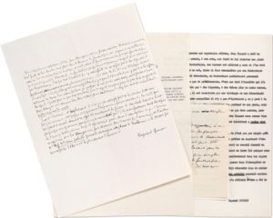 On joint un manuscrit autographe signé en hommage au peintre et poète nîmois Georges CLAIREFOND (1 page et demie in-8 avec corrections ; plus 2 tapuscrits et une L.A.S. de G. Clairefond, 1966) ; et le manuscrit autographe d'un texte de présentation sur André SALMON poète (1 p. in-4 ; plus une L.S. d'André SALMON à Raymond Queneau, avec une lettre aux éditions Gallimard, 8-9 septembre 1953).