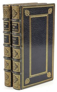OEuvres (Paris, Denys Thierry [et P. Traboüillet], 1687) ; 2 volumes in-12 (16,3 x 10 cm) ; I : [6] ff.-372 pp. (ã4, 2, A-Z8.4, Aa- Hh 4.8, Ii2) ; II: [8] ff.-434 pp.-[2] ff. (ã8, A-Z8.4, Aa-Nn4.8, Oo3) ; maroquin bleu nuit, double encadrement d'un triple filet doré à la « Du Seuil » avec fleurons aux angles pour l'encadrement intérieur, dos à nerfs orné, large dentelle intérieure dorée, tranches dorées sur marbrure (Thibaron-Joly).