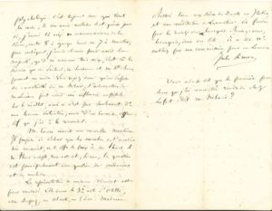 [1861]. Curieuse lettre à propos du prix biennal de l'Académie Française [créé par Napoléon III par décret du 11 août 1859 et doté de 20.000 F, il devait récompenser l'oeuvre « la plus propre à honorer ou à servir le pays, parue dans les dix dernières années » ; l'Académie se divisa entre partisans de George SAND et de Jules Simon, avant de donner le prix à Thiers]. Il ne compte pas sur la voix de Nisard, et livre ses calculs sur les voix qui iront à lui-même, à George SAND ou à Henri MARTIN ; grâce à Lemoine, il aura peut-être la majorité en gagnant celles de Ponsard, Sandeau et Sainte-Beuve... Il évoque une « nouvelle machine » de Victor COUSIN pour faire offrir le prix à THIERS, et termine en donnant le programme d'une représentation extraordinaire de Mme VIARDOT... [Fin 1875]. Sur son élection à l'Académie française [le 16 décembre 1875 au fauteuil de Rémusat]. Comme il y a deux sièges à pourvoir (Rémusat et Guizot), il n'a plus à entrer en compétition avec un autre candidat, et Mignet, Thiers et Cuvillier-Fleury voteront pour lui, ainsi que Doucet, Nisard et Sacy... « Je suis très reconnaissant à M. Alexandre Dumas de la cordialité avec laquelle il a accueilli ma candidature ; je n'ai pas trouvé plus de bonne volonté chez mes plus anciens amis, et comme j'ai des adversaires qui sont des maîtres dans l'art de calomnier et d'intriguer, j'ai besoin d'être soutenu »