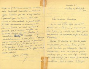 L.A.S. « Paul Valéry », décembre 1924, à Gabriel HANOTAUX ; 4 pages in-8 sur papier jaune (traces de papier collant).