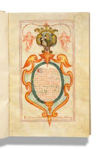 Antiphonaire espagnol du couvent de S. Pablo et S. Domingo d'Ezija (Écija) en Andalousie. Une page de titre, avec armoiries, donne dans un cartouche la table des chants. La première page s'ouvre sur une belle initiale ornée avec des armoiries, et un riche encadrement dessiné aux encres de couleur. Après les 49 feuillets de l'antiphonaire, un dernier feuillet calligraphié et orné aux encres noire et rouge donne la date, et le nom des auteurs dans des cartouches : Fr. Joannes de Velasco et Fr. Paulus de Carmona.
