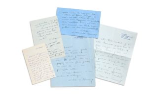Rozven [31.VII.1925], à Paul LOMBARD à L'Homme libre, remerciant d'un «charmant papier» ; signée «Colette de Jouvenel». [Paris 13.II.1942], à Marguerite MORENO, sur l'arrestation et la libération de Maurice Goudeket. «Si je ne t'ai pas écrit, c'est que je portais, pendant huit semaines, quelque chose de lourd, ma Marguerite. Maurice, “absent” depuis le 12 décembre, vient de m'être rendu»... 9, rue de Beaujolais, à Jean DENOËL, le remerciant pour l'envoi de romans policiers. «Depuis combien de temps suis-je alitée ? Arthrite des deux jambes. Impossible de faire un pas»...