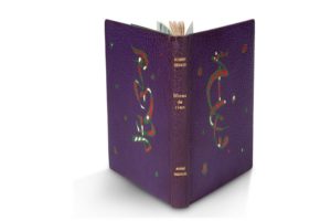 DESNOS Robert (1900-1945) Mines de rien (Paris, Louis Broder, 1957) ; in-8, maroquin bleu marine avec motif abstrait mosaïqué sur le plat sup., doublures de daim vert dans un cadre int. avec liseré de maroquin vert, couverture et dos conservés (Françoise Lévy-Bauer).