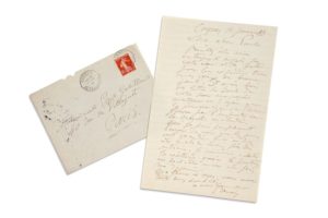 RENOIR Auguste (1841 - 1919) L.A.S. «Renoir», Cagnes 12 janvier 1910, à Paule GOBILLARD ; 1 page in-8, enveloppe.
