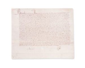 ARCHIVES XIVe - « GALARDON » [Gallardon en Eure et Loire] Acte en français daté de 1392, pour la vente d'un manoir en la châtellenie de « Galardon ». Acte rédigé par « Jehan Hugot bachelier en loi bailli de galardon ». 1 p. gd in-folio (59 x 49,5 cm) sur parchemin.