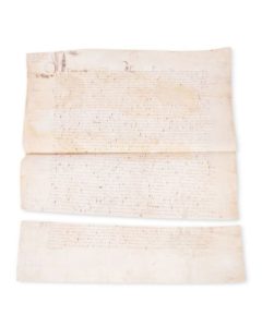 ARCHIVES XVIe - SAINT-GERMAIN-DES-PRES [Paris] Ratification d'un contrat d'échange du « fief d'Essans » appartenant au « bailly de Saint germain des pres les paris » fait le 30 mai 1517. 1 p ½. gd in-folio oblong, sur vélin (62 x 52,9 cm et 62 x 15 cm pour la demi-page). Document en assez bon état, belle lettrine ornée.
