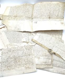 ARCHIVES XVIe Important ensemble de 21 documents datés de 1519 à 1599, principalement des chartes sur parchemin et papier. Formats divers. Certains documents endommagés (déchirures, saleté, trous de vers).