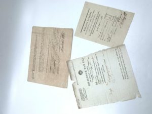 QUITTANCE XVII ET XVIII Ensemble de quittances en partie imprimées : Quittance des deux sols pour livre, signé par « Marchand » dans la généralité d'Orléans. Fait à Paris, le 22 aout 1698. 1 p ; in-folio oblong ; Facture à l'en-tête du « Magasin Général des huiles de lampe sans fumée, sans odeur, et odoriférées » Paris, 19 janvier 1780. 1 p. in-8 ; DILIGENCE PAR EAU de Rouen à Paris. Fait à Rouen, le 14 novembre 1782. 1 p. in-4.