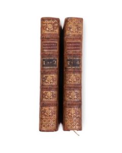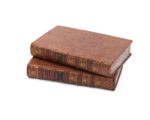 [CHODERLOS DE LACLOS]. Les Liaisons dangereuses, ou Lettres Recueillies dans une Société, & Publiées pour l'instruction de quelques autres. Par M. C.. de L Amsterdam, Paris, Durand Neveu, 1782. 4 tomes en 2 volumes in-12, veau marbré, dos à 5 nerfs ornés (Reliure de l'époque). Brun, 13 /// I. 248 / II. 242 / III. 231 / IV. 257. Édition originale du tirage C, dite "à la roue dentée". Exemplaire absolument conforme à la description de Max Brun. Celui-ci indique le succès foudroyant du roman. Le 16 mars 1782, Choderlos de Laclos passe un contrat avec l'éditeur Durand Neveu pour l'impression de 2.000 exemplaires de son manuscrit Les Liaisons dangereuses. Et le 21 avril 1782, l'auteur consent à la publication d'une seconde édition Sous la date de 1782, paraissent au moins 16 éditions différentes ; les unes sont légitimes, les autres des contrefaçons. Max Brun fait remarquer que les éditions A, B et C se ressemblent beaucoup et qu'à partir du tirage D, les différences sont beaucoup plus notables. Bel exemplaire dans une reliure strictement contemporaine. Accroc à une coiffe inférieure, 3 coins usés et un petit manque dans la marge latérale d'un feuillet dû à la taille initiale de la feuille.