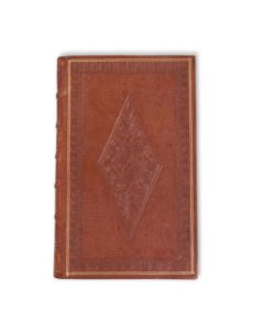 Pierre DIDOT, fils. Essai de fables nouvelles dédiées au Roi ; suivies de Poésies diverses et d'une épître sur les progrès de l'imprimerie. Paris, Didot l'aîné, 1786. In-12, cuir de Russie havane, encadrement formé d'un double filet doré et d'une roulette à froid, grand fer losangé à froid au centre des plats, dos à 5 nerfs orné, roulette intérieure dorée, tranches marbrées (Reliure du tout début du XIXe siècle). Brunet, II-701 /// 150-(3f.). Édition originale de cet ouvrage témoignant de la collaboration étroite entre les Didot, avec un texte écrit par le fils aîné Pierre, et publié par son père François Ambroise en utilisant les caractères de son second fils Firmin, ainsi que des multiples talents de cette famille dont les membres furent, tour à tour et à la fois, imprimeurs-libraires, graveurs et fondeurs de caractères, papetiers, etc. Bel exemplaire.