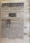 DION CASSIUS. Epitome della Historia romana di Dione niceo di XVV. imper. Romani da Pompeo Magno fino ad Alessandro Figliuolo di Mammea Venise, Gioliti, 1585. In-8, vélin ivoire, dos lisse (Reliure de l'époque). Brunet, II-714 /// (1f.)-367. Nouvelle édition de cette traduction italienne par Francesco Baldelli, ornée de 55 bandeaux et lettrines, la plupart répétés. Annotations et soulignements anciens à l'encre.