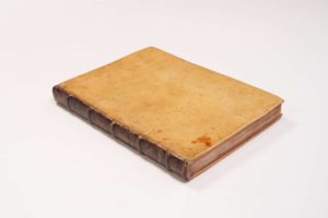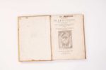 Guillaume DU CHOUL. Discours de la religion des anciens romains Lyon, Guillaume Rouille, 1556. In-4, vélin rigide avec dos de veau à 4 nerfs orné ajouté (Reliure de l'époque). Baudrier, IX-229 / Brunet, II-858 /// 312-(28f., le dernier blanc). Edition originale de cet ouvrage qui fut annoncé par l'auteur dans un autre ouvrage qu'il publia en 1555 : Discours sur la castramétation et discipline militaire des anciens romains et que l'on considère parfois, à tort, comme la seconde partie. Nombreuses figures sur bois reproduisant des médailles ou des fragments de marbres antiques. 3 figures anciennement coloriées, un feuillet restauré, quelques taches.