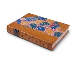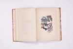 John GRAND-CARTERET. Les Moeurs et la caricature en Allemagne, en Autriche, en Suisse. Paris, Louis Westhausser, 1885. In-4, demi-maroquin citron à coins, dos à 5 nerfs richement orné de fers dorés et fleurons mosaïqués, tête dorée (Reliure de l'époque). Vicaire, III-1090 /// XX-491-(2f.). Édition originale ou seconde édition (qu'on ne distingue entre elles que grâce à la couverture, absente ici), ornée de nombreuses reproductions en noir dans le texte, et de 5 planches hors-texte dont 3 en couleurs et 2 à double page. Rares piqûres.