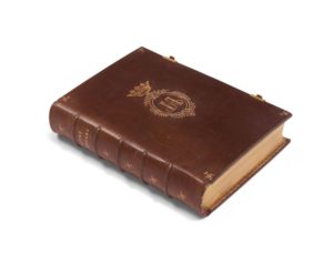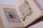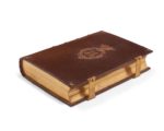 LIVRE RELIGIEUX. LIVRE D'HEURES. Avec un choix d'autres prières par Mgr Mislin. Vienne, Henry Reiss, s.d. (circa 1880). In-8, chagrin marron, chiffre H.M. couronné dans un fleuron doré au centre du premier plat, même fleuron répété au second plat sans le chiffre, dos à 5 nerfs orné de fleurettes dorées, fermoirs ouvragés, dentelle intérieure dorée, tranches dorées (Reliure de l'époque). (4f.)-534-(2f.). Livre d'heures imprimé à la fin du XIXe siècle, illustré de riches encadrements en couleurs à chaque page, d'un frontispice et de 23 hors-texte. Dos légèrement passé. On joint : LIVRE D'HEURES. S.l.n.n.n.d. (Vers 1905). In-8, maroquin janséniste vert lierre, dos à 5 nerfs orné, encadrement intérieur d'une dentelle dorée, doublure et gardes de soie moirée vert olive, tranches dorées (Blanchard). Joli livre d'heures imprimé, entièrement enluminé à l'aquarelle. Au total un titre, 5 pleines pages, 87 feuillets de texte avec enluminures et 4 vignettes. Dos passé.