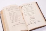 Jean Claude PEYROT. Poésies diverses, Patoises et Françoises. P.M.P**A.P.D.P. En Rouergue, s.n. (Vedeilhié), 1774. - Les Quatre saisons, ou les Géorgiques patoises Villefranche, Vedeilhié ; Figeac, Champollion ; Rodez, Vedeilhié ; Millau, Rainaldis, 1781. Ensemble 2 ouvrages en un volume in-8, veau granité, dos lisse orné (Reliure de l'époque). Brunet, VI-14393-14394 / Quérard, III-930-1127 /// XIV-(1f.)-262 / 159-(1f.) // (1f.)-5 à 128-(1f.)-19 à 95. Rares éditions originales de ces Poésies imprimées à Ville-Franche-de-Rouergue par Vedeilhié, Les poésies sont écrites, pour chaque ouvrage, en patois et en français. Le second ouvrage contient un lexique des termes utilisés avec la traduction française. L'auteur était prieur à Pradinas. On joint : Claude PEYROT. OEuvres patoises et françaises. - OEuvres françaises contenant toutes les poésies de ce genre, principalement celles qui ont été couronnées. Milhau, Imprimerie de Chanson, 1810. 2 parties en un volume in-8, demi-maroquin brun, dos lisse orné (Reliure de la seconde moitié du XIXe siècle). Troisième édition. Manque le feuillet A1 (blanc ?). Petites restaurations marginales à quelques feuillets dont le titre, dernier feuillet contrecollé sur papier fort.