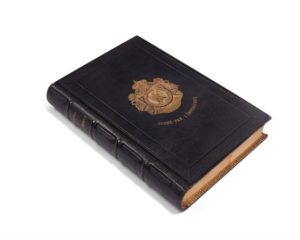 RELIURE DU XIXe siècle . In-4, chagrin ébène, armes impériales dorées au centre du premier …