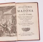Mr. RENOULT. Les Avantures (sic) de la Madona et de François d'Assise. Capable de faire voir le ridicule du Papisme. Amsterdam, Les Héritiers de Daniel La Feuille, 1750. In-12, demi-maroquin rouge à long grain à coins, empreinte à froid sur le premier plat, dos lisse orné de filets dorés et de fleurons à froid (Reliure du milieu du XIXe siècle). Brunet, IV-1236 /// (10f.)-166-(1f.). Troisième édition de cet opuscule rédigé par un ancien cordeliers, défroqué, qui professa ouvertement le calvinisme. L'auteur critique ici la Madona des italiens qui ne doit pas être confondue, selon lui, avec la vierge Marie. Un frontispice et 8 planches gravées.