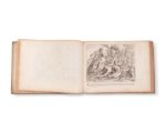 Théodore Van-THULDEN. Errores Ulyssis adumbrati a S. Martino ut in Regia Fontis-bellaquae spectantur. A Nicolao depicti ; et in as incisi à Théodoro Van-Tulden . Unà cum argumento, & interpretatione morali cuiuflibet fabulae. Paris, Tavernier 1634. In-folio à l'Italienne, veau marron, dos à 4 nerfs moderne (Reliure de l'époque restaurée). Hoefer, XXXV-314 /// (6f.)-58 pl. Curieuse suite de 58 planches gravées retraçant les aventures et les voyages d'Ulysse. Théodore Van Thulden, graveur et peintre flamand (1607-1676), s'attacha à l'école de Rubens dont il fut un grand admirateur. Il vint à Paris en 1632 et y exécuta un série de petits tableaux destinés à l'église du couvent des Mathurins. Il publia également à cette même époque la série que nous présentons ici, qui est copiée sur des peintures exécutées à Fontainebleau par Nicolas dell' Abbate. Ces estampes sont précieuses, en ce sens qu'elles nous ont conservé le souvenir d'une galerie qui fut détruite sous Louis XV. La série de gravures est précédée d'un titre, un feuillet de dédicace, un feuillet de préface, 2 feuillets pour les commentaires et la moralité de chaque planche et un feuillet d'avertissement. Annotation ancienne à un feuillet de garde. Reliure restaurée, rousseurs, taches et quelques déchirures réparées.