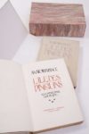 Anatole FRANCE. L'Île des pingouins. Paris, Lapina, 1926. 2 volumes in-4, brochés, étui. Feuille, 53 / Monod, I-4900 /// I. (2f.)-X-167-(3f.) / II. (2f.)-173 à 379-(4f.). Première édition illustrée de 20 pointes-sèches originales hors texte et 131 dessins gravés sur bois en couleurs dans le texte de Louis Jou. Les débuts et les bouts de ligne sont agrémentés de petits pingouins tirés en sépia. Les 20 pointes-sèches ne sont pas toutes hors texte, 6 d'entre elles occupant les pages 49, 107, 151, 223, 289 et 359. Tirage à 535 exemplaires, celui-ci un des 410 sur Hollande (n° 225). Dos passés.