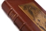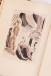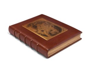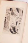 Francis CARCO. Rien qu'une femme. Paris, La Roseraie, 1925. In-4, maroquin châtaigne, cuivre encastré sur le premier plat, dos à 5 nerfs, encadrement intérieur avec filets et fers floraux, tranches dorées, couverture et dos (Yseux sc. de Thierry-Simier). Monod, I-2273 /// (3f.)-162-(1f.). Seconde édition illustrée contenant 16 eaux-fortes originales en couleurs de Chas Laborde dont le frontispice, une grande vignette-de-titre et 14 planches hors texte. Tirage à 276 exemplaires, celui-ci un des 15 Japon impérial, second papier après un Japon ancien. Exemplaire contenant une page manuscrite de Carco, un dessin original ayant servi à l'illustration, un cuivre ayant servi à l'illustration, ici enchâssé dans la reliure, les eaux-fortes en 3 états, premier état, état noir et état définitif en couleurs, et 3 épreuves refusées également en 3 états. La vignette-de-titre est en 2 états, état noir et état définitif en couleurs. Très bel exemplaire parfaitement relié par Yseux.