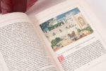 Miguel de CERVANTES. L'Ingénieux hidalgo Don Quichotte de la Manche. Paris, Les Heures Claires, 1957-1960. 4 volumes petit in-4, demi-maroquin rouge à coins, dos à 4 nerfs, têtes dorées, couvertures et dos (Reliure de l'époque). Monod, I-2449 /// I. 220-(1f.) / II. 215 / III. 221 / IV. 228-(4f.). 92 illustrations en couleurs dans le texte de Henry Lemarié gravées sur bois par Raymond Jacquet, Dominique Darr et Jean Taricco. Tirage limité à 2900 exemplaires, celui-ci un des 2450 sur vélin de Rives (n° 1113).