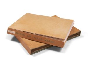 Marcelle MARTY. Images d'une petite ville arabe. S.l. (Paris), Bruker, s.d. (1947). In-4, en feuilles, chemise et étui. Premier volume de la Collection Invitation au voyage illustré de 26 gravures originales à l'eau-forte dans le texte de Albert Marquet, dont la couverture, 13 grandes têtes-de-chapitre et 12 grands culs-de-lampe. Tirage à 225 exemplaires sur vélin d'Arches (n°146). Chemise et étui abîmés.