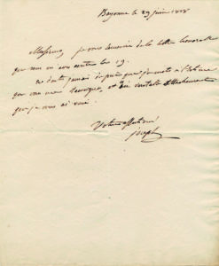 Bayonne, 29 juin 1808. 1/2 p. in-4. « Messieurs, je vous remercie de la lettre honorable que vous m'avez écrite le 19. Ne doutés jamais du prix que je mets à l'estime que vous me témoignés, et du véritable attachement que je vous ai voué. Votre affectionné... »