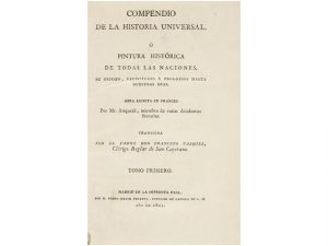 1801-1807. (HISTORIA). ANQUETIL: COMPENDIO DE LA HISTORIA UNIVERSAL O PINTURA HISTORICA DE TODAS LAS NACIONES, SU ORIGIEN , VICISITUDES Y PROGRESOS HASTA NUESTROS DIAS. Trad. por el padre Francisco Vazquez, 1801-1807. 17 vols. en 8° mayor. 350 p....