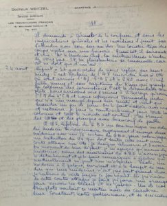 113 ff. in-folio recto-verso ; mise au net presque sans ratures. Premier et dernier feuillets effrangés avec déchirures. - Transcription dactylographiée jointe. JOURNAL DE GUERRE D'UN MÉDECIN MILITAIRE, tenu de juillet 1914 à décembre 1918, principalement en Lorraine. Parfois au front avec son ambulance ou dans son hôpital de campagne, parfois à l'arrière, il décrit au jour le jour les bombardements, l'afflux de blessés, ses actes chirurgicaux, etc. De nombreux sont à en-tête postérieur d'un docteur Weitzel à Chartres, peut-être l'auteur de ces lignes.