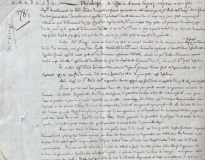 Jean-Antoine Viel, avocat au Conseil supérieur du Cap, plaide en faveur des héritiers de Josué Baudin qui contestent les prétentions d'Anne Taguy, noire, et de son fils Jean-Pierre, dit Fayette, mulâtre, anciens esclaves de Josué Baudin, à se considérer comme libres si une compensation financière n'est pas versée en échange par l'exécuteur testamentaire du sieur Garreau, qui fut fondé de pouvoir des héritiers Baudin, et qui est le père présumé de Fayette.