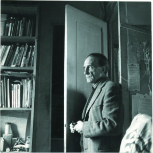 Belle photographie par son ami l'écrivain Michel Waldberg (1940-2012), où Marcel Duchamp est représenté dans son atelier du 11 rue Larrey, debout de profil devant « la porte jamais ouverte jamais fermée ».