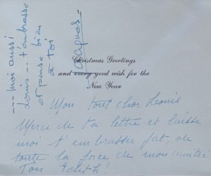 PIAF (Édith Giovanna Gassion, dite Édith) — Carte autographe signée avec apostille autographe signée de Jacques Pills, adressée à l'écrivain et parolier Louis Amade.