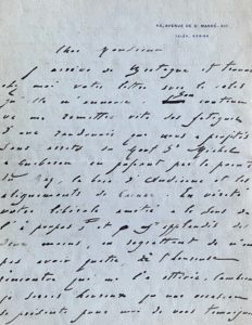 COURTELINE (Georges Moinaux dit Georges). 2 lettres autographes signées, s.d., l'une sur l'exposition coloniale de Marseille, avec allusion plaisante à la chanson La Baronne de Folleville, s.d., et l'autre évoquant un séjour en Bretagne et un départ pour Hendaye, avec citation de l'opéra de Charles Gounod d'après Frédéric Mistral, Mireille. – DELAUNAY (Sara Stern dite Sofia Terk dite Sonia). Lettre autographe signée. Paris, 1er juin 1932. Elle accepte une invitation. – FARRERE (Charles Bargone dit Claude). Lettre signée. Paris, 23 mars 1949. Sur sa situation à Saint-Jean-de-Luz puis à Biarritz sous l'Occupation. – FOUJITA (Tsuguharu Fujita dit Léonard). Tirage sur soie signé d'une des planches gravées sur bois en couleurs de l'ouvrage Petits métiers & gagne-petit d'Albert Fournier paru en 1960. – LE BON (Gustave). Carte autographe signée. S.l., 12 mars 1921. Il évoquant son livre Psychologie des temps nouveaux. – Aurélien François Marie Lugné dit LUGNE-POË, Octave Lebesgue dit Georges MONTORGUEIL, Maurice ROLLINAT (carte de visite à Hugues Lapaire pour le féliciter de ses Noëls berriauds, probablement 1898), Hippolyte TAINE (citation de son Histoire de la littérature anglaise, 1892), Marcel VERTES (estampe gravée sur cuivre signée), l'écrivain et journaliste Armand VILLETTE, etc. – JOINT, le faire-part de décès imprimé de Joris-Karl HUYSMANS, l'ex-libris de Lucie Badoud dite Youki gravé par Léonard FOUJITA, gravé et 3 cartes postales reproduisant des œuvres de Léonard FOUJITA (dont 2 imprimées au Japon).