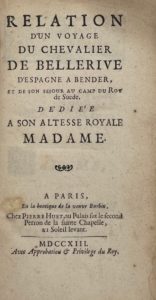 BELLERIVE (Jules-Alexis-Bernard de) — Relation d'un voyage du chevalier de Bellerive d'Espagne à Bender, et de son séjour au camp du roy de Suède.