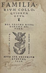 Lugduni, apud Seb. Gryphium, 1536. [Au colophon, placé à la fin de l'index :] Lugduni apud Sebastianum Gryphium, 1537. Petit in-8, 689-(3) pp., veau brun granité, dos à nerfs, coupes ornées, tranches rouges ; reliure usagée avec accroc à un mors, quelques mouillures (reliure vers 1700).Ouvrage originellement paru sous le voile de l'anonyme à Louvain en 1519, puis le nom d'Érasme à partir de 1522 en un texte légèrement remanié.