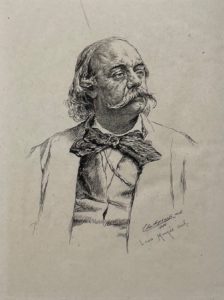 Exemplaire enrichi du portrait de Gustave Flaubert gravé à l'eau-forte par Louis Monziès d'après Ernst Friedrich von Liphart.