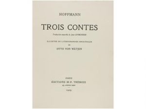 1929. (VANGUARDIAS-DEDICATORIA- 1a EDICION). HOFFMAN; VON WATJEN, OTTO [ilustrador]: TROIS CONTES. Traduction nouvelle de Jean Aymonier. Paris: édit. MP Trémois, 1929. 4° menor. 178 p., 3 h. Illustrado con litografias de Otto Von Wätjen....