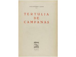 1932. (VANGUARDIAS-13 EDICION). GAOS, ALEJANDRO: TERTULIA DE CAMPANAS. Madrid: Ediciones Ulises, 1932. 4° mayor. 60 p., 2 h. Holandesa con lomo de piel con hierros y dorados conservando las cubiertas originales. Muy buen ejemplar. Raro. Libro de...