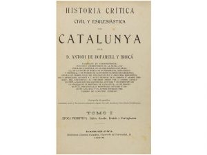 1908 ca. (CATALANISMO-AUTOGRAFOS). BOFARULL, A.: HISTORIA DE CATALUNYA. TOMO I. Quadern 16 de la Biblioteca Clàssica Catalana. Portada ilustrada por Utrillo y encuadernación editorial en tela ilustrada. Al final de la obra 6 p. de firmas y...