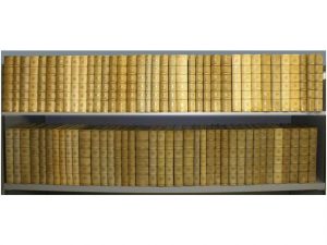 1920-1950 ca. (CATALUNYA). LOTE DE APROX. 83 VOLUMENES DE LA COLECCION ELS NOSTRES CLASSICS, ENCUADERNADO POR BRUGALLA. Barcelona: Ed. Barcino, 40 vols. en 8°. ENCUADERNACION EN PERGAMINO FIRMADA BRUGALLA. Nervios y lomo cuajado. Fundada y dirigida...