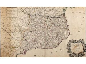 1707. (CATALUNYA). SANSON; JAILLOT: PRINCIPAUTE DE CATALOGNE OU SONT COMPRIS LES COMTES DE ROUSSILLON ET DE CERDAGNE DIVISES EN LEURS VIGUERIES. Paris: chez H. Iaillot, 1707. 60,5 x 98,5 cm. Coloreado. Entelado. Pequena falta debido a la doblez....