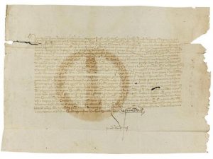 1422. (FIRMA REAL-MARIA DE CASTILLA, REINA DE ARAGON). LA REINA DE ARAGON, MARIA DE INGRACIA, PRIMOGENITA DEL REINO DE CASTILLA, SE DIRIGE AL ALCALDE DE LA CIUDAD DE VIX, CITANDO 15 O 20 DELINCUENTES. Manuscrito sobre papel con sello de cera. 20x29...