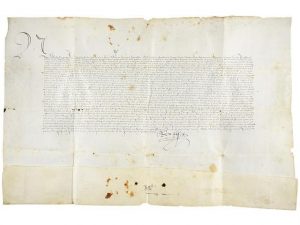 1438. (FIRMA REAL-ALFONSO DE ARAGON). PRIVILEGIO A LA FAMILIA LACABALLERIA PARA QUE PUEDAN TRANSMITIR EL APELLIDO POR LINEA FEMENINA. Firmado en Sicilia, 1438. Pergamino. 34x54 cm.