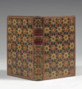 grenat, triple filet doré encadrant les plats, coupes fi letées, tranches dorées sur teinture rouge, quelques mouillures et déchirures, une découpure anciennement restaurée p. 159 des Constitutiones, les parties liminaires et annexes mal placées par le relieur qui aprobablement conservé l’ordre du volume tel que constitué auparavant avec mentions à l’encre aux titres (reliure du xviiie siècle). L’ÉDITION ORIGINALE DES CONSTITUTIONS DE LA SOCIÉTÉ DE JÉSUS. LES LOIS ORGANIQUES ET PRINCIPES FONDAMENTAUX QUI RÉGISSENT LA COMPAGNIE DE JÉSUS. Saint Ignace et ses premiers compagnons avait rédigé en 1539 une première ébauche de constitution (Formula instituti) qui fut approuvée en 1540 par Paul III dans sa bulle d’approbation de la Compagnie de Jésus. Si d’autres bulles et brefs pontificaux commencèrent d’encadrer le fonctionnement de l’Ordre, il revint à saint Ignace d’établir une base réglementaire complète. Après de premiers travaux avec l’aide du Père Jean-Baptiste Codure (mort en 1541), c’est surtout de 1547 à 1551 qu’il mena à bien la rédaction des Constitutions, en collaboration avec le Père Juan de Polanco qui en assura également la traduction de l’espagnol en latin. Il soumit cette version à plusieurs Pères, la modifia en tenant compte de leurs remarques, et permit d’en faire l’essai dans plusieurs provinces. La première Congrégation générale approuva le texte en 1558 et le soumit au pape, lequel donna à son tour son approbation. Le supérieur général Diego Laínez en ordonna alors l’impression. Fruit des méditations de saint Ignace et d’une réflexion collective, les Constitutions s’avèrent un grand texte législatif. Elles s’organisent en dix chapitres concernant les admissions et les renvois, le noviciat, les études, les vœux, la vie spirituelle, les actions de l’Ordre (notamment les missions), les moyens de conserver l’harmonie dans l’Ordre, le supérieur général, et les rapports de l’Ordre avec le monde séculier. Les Constitutions au sens strict s’accompagnent de précisions sur les conditions d’admission dans l’Ordre (Primum ac generale examen), de commentaires (Declarationes) et des textes pontificaux concernant l’Ordre édictés depuis 1540 (Litteræ apostolicæ) - jusqu’à juin 1559 dans la présente édition. RARISSIME EXEMPLAIRE BIEN COMPLET DE TOUTES SES PARTIES. La consultation significative mais non exhaustive des catalogues collectifs d’Allemagne, d’Espagne, de France, d’Italie, des catalogues de la British Library et de la Library of Congress, ne permet de trouver qu’UN SEUL AUTRE EXEMPLAIRE COMPLET (à la Library of Congress) et une soixante d’exemplaires incomplets formés généralement d’une seule des parties La rareté actuelle des exemplaires complets s’explique certainement par le fait que cette édition originale a conservé une autonomie visuelle à ses quatre parties (propice à leur séparation), chacune étant dotée d’un titre particulier, le tout étant simplement précédé d’un titre général, d’une épître, et d’un avertissement soulignant que ces parties forment un tout : - CONSTITUTIONES SOCIETATIS JESU. 1559. Colophon daté de 1559 à la fin de l’avertissement. Collation : (10) pp. non chiffrées, soit une p. de titre général, une p. blanche, (8) pp. pour l’épître et l’avertissement. Sans signatures : [*]1-[**]4. - PRIMUM AC GENERALE EXAMEN iis omnibus, qui in Societatem Jesu admitti petent, proponedum. 1558. Sans colophon. Collation : 56 pp., soit 44 pp. dont le titre pour l’Examen, 4 pp. blanches, pp. 45 à 52 pour les Declarationes in examen. Signatures : A-C8 [dont les ff. C 7-8 blancs], A - CONSTITUTIONES SOCIETATIS JESU. Anno 1558. 1558. Colophon daté de 1559 à la fin de l’index. Collation : 159 pp. dont le titre pour les Constitutiones, une p. blanche, (8) pp. dont la dernière blanche pour l’Index capitum. Signatures : A-K8, A4. Il est connu que la page 159 existe en deux états différents, l’un d’eux présentant un passage final supplémentaire qui rappelle deux règles imposées aux jésuites par Paul IV en septembre 1558 : celle de conserver une vie de chœur et celle limitant le mandat du supérieur général à trois ans renouvelables. Ces deux dispositions ayant été abrogées par le successeur de Paul IV, le propriétaire du présent exemplaire y a découpé ce passage devenu obsolète. - DECLARATIONES et annotationes in Constitutiones Societatis Jesu. 1559. Colophon daté de 1559 au bas de la p. 121. Collation : 125 pp. dont le titre et son verso blanc, (1) p. blanche. Signatures : A-G8, H7. Sans le dernier f. blanc. - LITTERÆ APOSTOLICÆ, quibus institutio, confirmatio, & varia privilegia, & indulta Societati Jesu a Sede Apostolica concessa continentur. 1559. Collation : 67 pp. dont le titre et son verso blanc, mal chiffrées 1 à 65, 67, 78, puis (1) p. blanche. Signatures : A-D8, E2. Tous les titres sont ornés d’un bois gravé à l’emblème de la Compagnie, soit quatre bois différents dont un répété. Bibliographie : De Backer et Sommervogel, vol. V, col. 75-77, 86 et 94.
