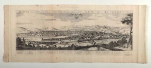 [Gravure]. [Topographie]. [Florence]. Florence la belle ville capitalle de l’estat du Grand Duc de Toscane. A Paris chez Iean Boisseau, 1646. Une vue gravée sur cuivre, env. 28,5 x 73 cm. (cuivre) ; marges et onglet inclus 36 x 87,5 cm. (plis sans gravité). Très rare vue panoramique gravée de Florence. Elle fait partie du rarissime atlas publié à Paris par Jean Boisseau entre 1642 et 1648, le « Theatre des citez ». Légende en marge sous la gravure. Titre manuscrit ancien au dos ; onglet dans la marge de gauche et trace d’onglet central au dos. (Pastoureau, Les atlas français, Boisseau I, n° 34).