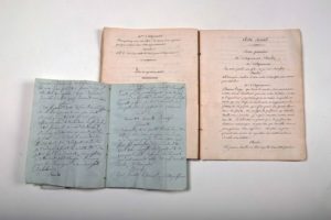 [Manuscrit]. [DUVAL (Alexandre)]. Le prince troubadour. [Paris, vers 1813]. In-12, cousu, [36] f, [1] f. bl., sur papier azuré (pli vertical sans dommage à chaque feuillet). Copie manuscrite du livret du Prince Troubadour, opéra-comique en 1 acte rédigé par Alexandre Duval, qui fut interprété à Paris le 24 mai 1813, à l’Opéra-Comique, avec la musique composée par Méhul. On joint : [Manuscrit]. L’HÉRITIÈRE. Comédie en trois actes. XIXe s. Un cahier in-4, [36] f. écrits à l’encre au r° et v°, broché, couv. papier marbré, titre ms. sur étiquette. Ecriture soignée et sans ratures (couv. un peu défraîchie, rares rouss.) Soit 2 volumes.