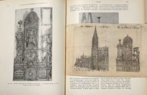 UNGERER (Alfred). Les horloges astronomiques et monumentales les plus remarquables de l’Antiquité jusqu’à nos jours. Strasbourg, chez l’auteur, 1931. In-4, 514 p., 458 ill. dans le texte, index, demi-chagrin rouge récent, dos lisse à décor de cercles dorés, auteur et titre dorés, tête dorée, couv. et dos conservés. Bel exemplaire de l’édition originale. Est jointe une gravure ancienne volante montrant la cathédrale de Strasbourg et son horloge astronomique.