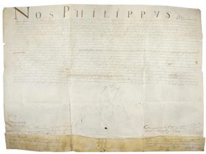 1626. (FIRMA REAL - FELIPE IV - ZARAGOZA). CONCESION DE PRIVILEGIO PARA PASAR HEREDITARIAMENTE UNOS IMPUESTOS A LA CIUDAD DE ZARAGOZA. Pergamino. 60x75 cm. Firmado YO EL REY.