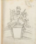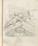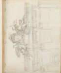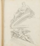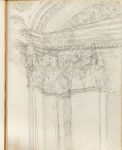 POTAIN Nicolas, Recueil de 88 croquis à la mine de plomb Petit in-folio au format in-4°, 88 pages, reliure demi-maroquin vert vers 1880 signée Capé Recueil de dessins d'architectures et sculptures principalement romains datant d'un Grand Tour. Indication manuscrite contrecollée sur la page de garde attribuant les dessins à Potain Père et faisant mention d'un cadeau de son fils Victor Maximilien Potain, grand prix de Rome en 1785, année où Fontaine reçut le second Prix.